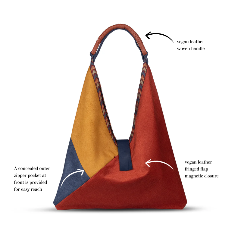 Casual but chic, Our three colour shopper tote adds a touch of glamour to your daily chores. The size allows you to carry all your essentials. In rich textured smooth finish fabrics, with a woven vegan leather handle. A concealed outer zipper pocket for your mobile or mask for a swift reach.