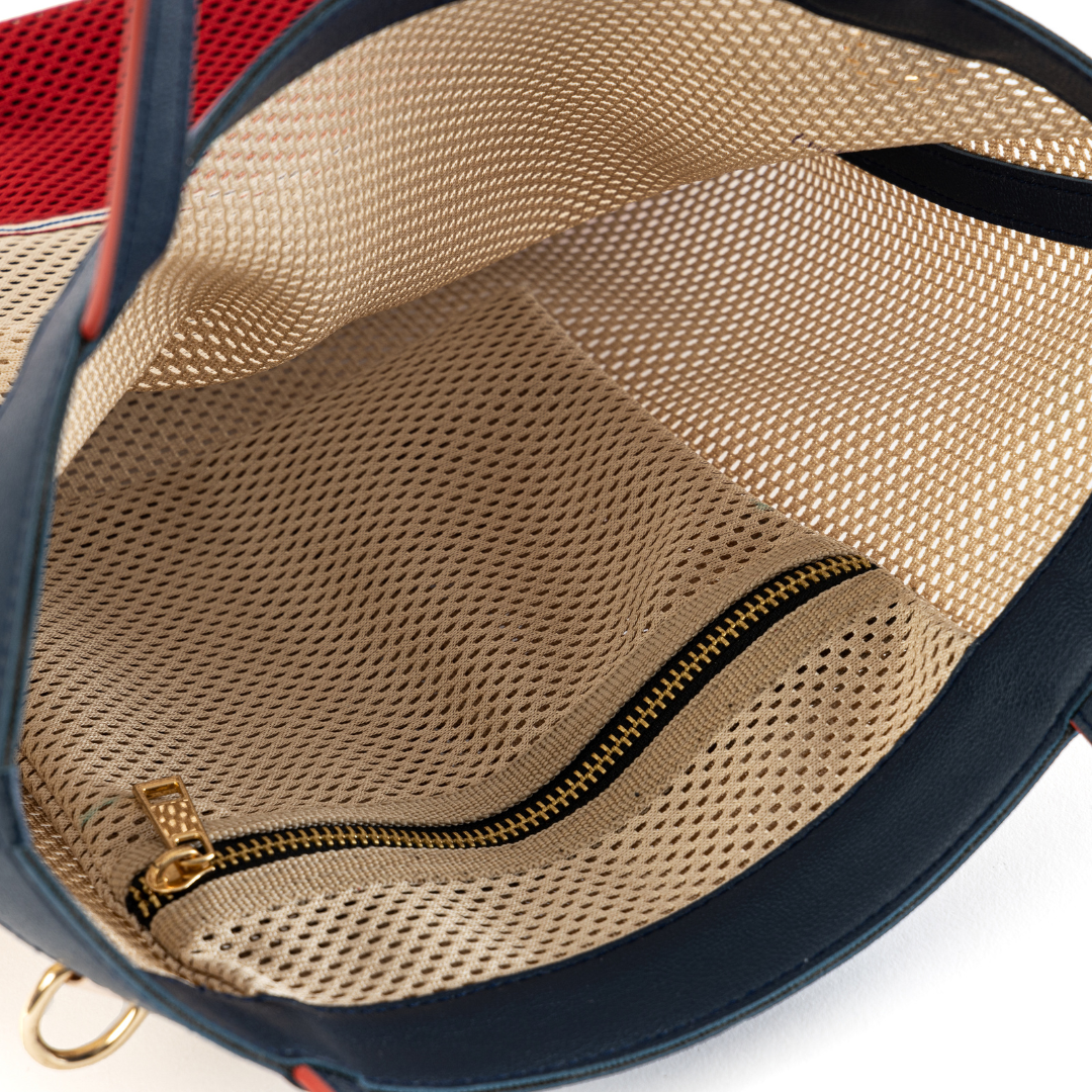 Meet the sassiest of the lot, The Out of Office – Mirchi Tadka tote. Designed in breathable mesh with a sharp contrast fabric tape, it’s fiery, confident, and full of personality. The hidden magnetic closure and D-ring accents keep it effortlessly functional, while the roomy structure makes it your go-anywhere, statement carry.